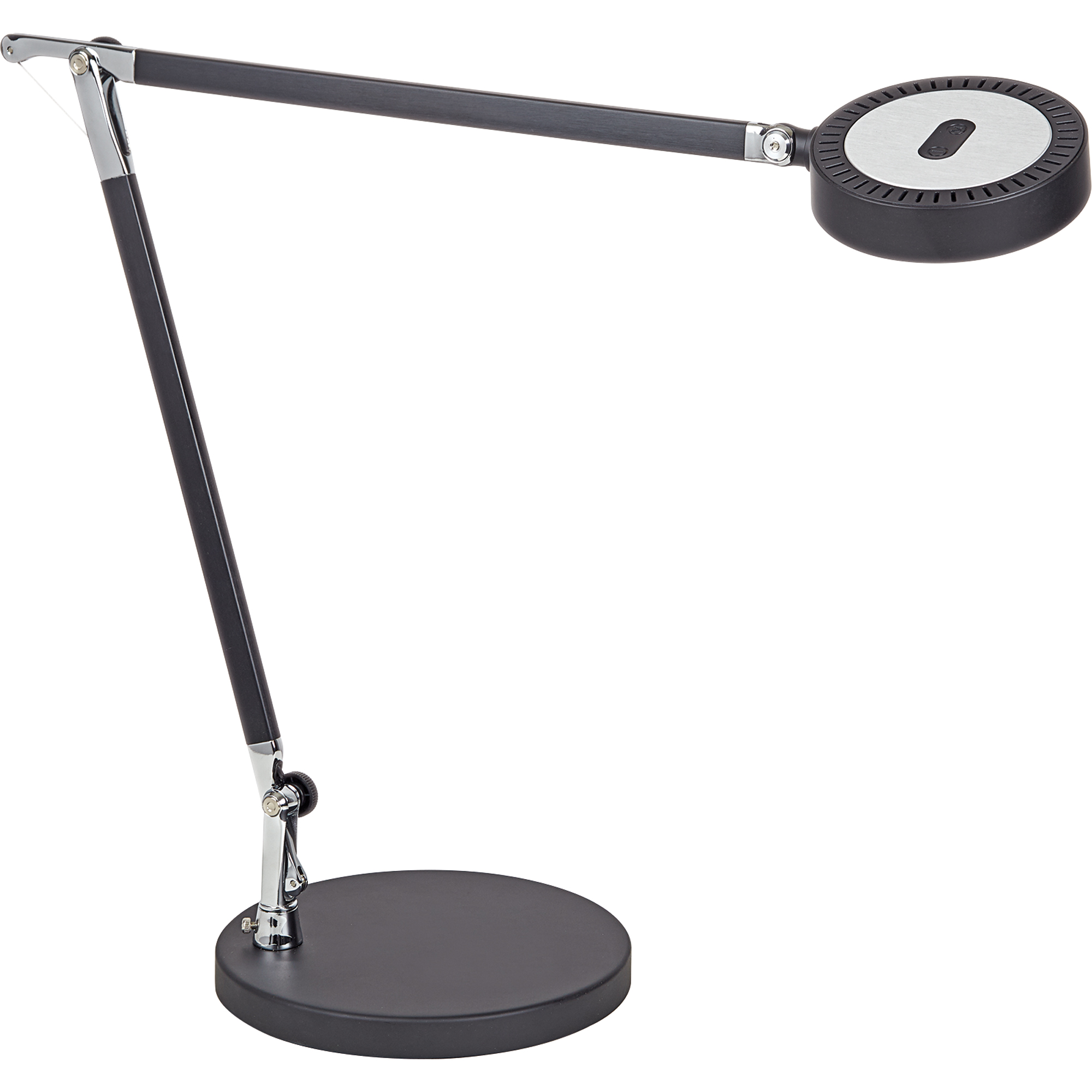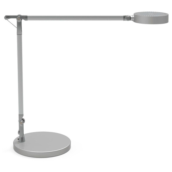 Hochwertige Designleuchte mit Doppelarm. Klare Linienführung, reduzierte Eleganz. Großer Aktionsradius durch langen Doppelarm, Licht schattenfrei von oben. Bedienung über Touchfeld am Leuchtenkopf. Farbtemperatur stufenlos und Beleuchtungsstärke in 4 Stufen einstellbar, je nach Tageszeit und Befinden. Doppelgelenkarm dreh- und neigbar. Stabiler Standfuß mit Beschwerungseinlage und schreibtischschonender Unterlage. 80 % weniger Energieverbrauch der LED im Vergleich zu einer Glühlampe. Technisches Sicherheitskonzept Made by MAUL. Die Leuchte enthält eingebaute LED-Lampen. Die Lampen können nicht ausgetauscht werden.