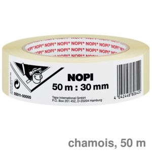 Papier-Klebeband NOPI® Maler-Krepp. Einsatzbereich: Innenbereich. Produktverwendung: zum Abkleben gerader Kanten. Max. Ablösezeitraum: 3 d. Für glatte Untergründe. Bandgröße (L x B): 50 m x 19 mm. Farbe: beige.