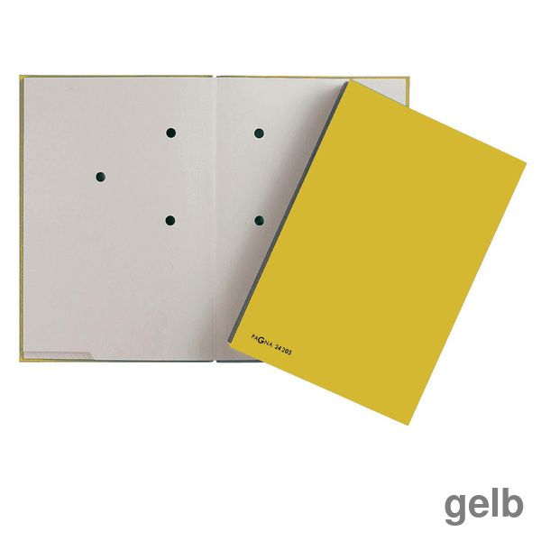 Unterschriftsmappe. 20-teilig. gelb. Color-Einband. mit dehnbarem Rücken. grauem Löschkarton. 3 Schaulöchern im Buchblock.