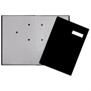 Unterschriftsmappe. 5-teilig. rot. Leineneinband. mit dehnbarem Rücken. grauem Löschkarton. 3 Schaulöchern im Buchblock.