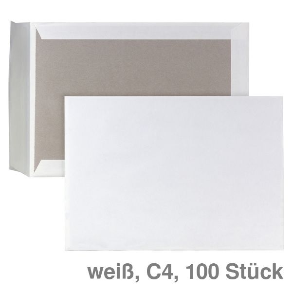 Papprückwandtasche C4, ohne Fenster, haftklebend weiß 120g/m² 100St.