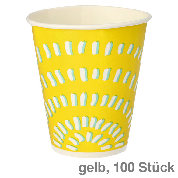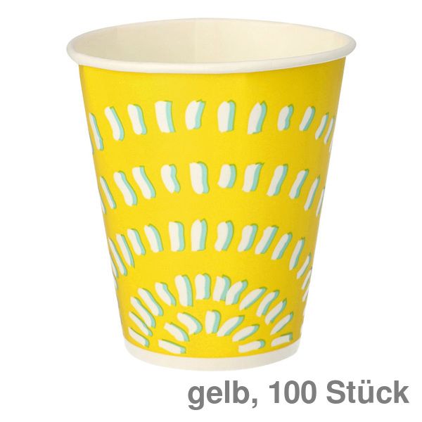 Pappbecher für Kaltgetränke. Höhe: 10 cm, Durchmesser: 8,97 cm, Füllinhalt: 0,3 l mit Füllstrich. innen und außen mit PE-Beschichtung, äußere PE-Beschichtung als Barriere für Kondensfeuchtigkeit. Nicht für alkoholhaltige Getränke geeignet!