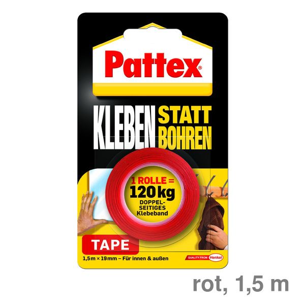 Klebeband Kleben statt Bohren, einfach - ohne handliches Werkzeug, leise - ohne Bohrlärm und lästige Bohrlöcher, sauber - ohne Staub und Schmutz, ultrastark - hält bis zu 120kg pro Rolle.