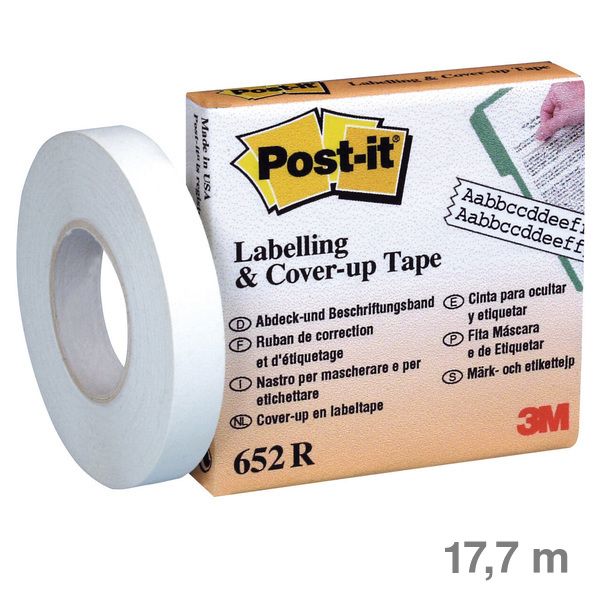 Abdeck- und Beschriftungsband. Werkstoff: Papier. Schattenfrei kopierbar. Wieder ablösbar. Produktverwendung: Abdecken/Korrigieren. Ohne Lösungsmittel. Weiß. Umfang des Korrekturbereiches: 2 Zeilen. Bandgröße (L x B): 17,7 m x 8,4 mm.
