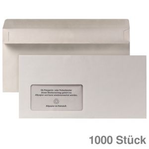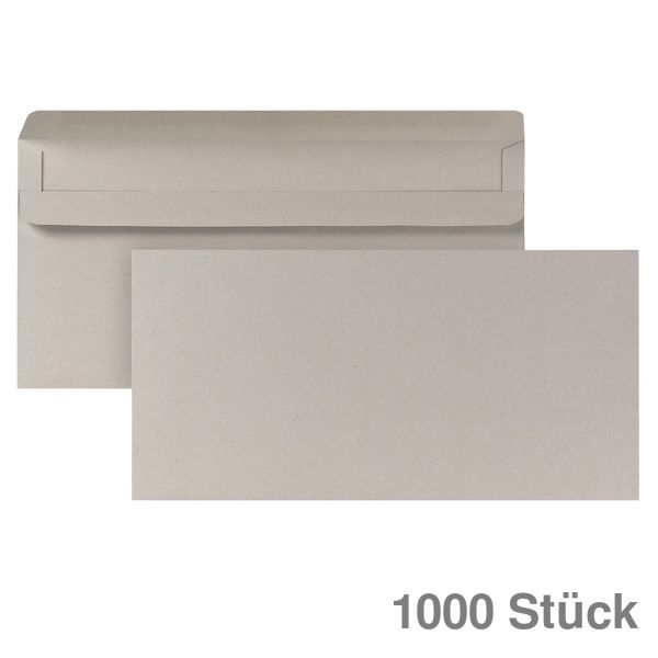 Recycling-Briefumschlag DL, ohne Fenster, selbstklebend grau 1.000St.