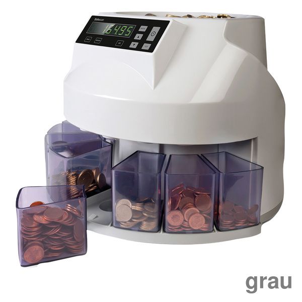 Euro-Münzzählgerät "Safescan 1250", grau - für den Markt: D / F / NL / A / L -zählt & sortiert 220 Münzen pro Minute, mit Additions- & Bündelfunktion, Gesamtwert und Menge pro Stückelung, inkl. 8 Münz-Tassen, 8 Münzrohren und Stromkabel