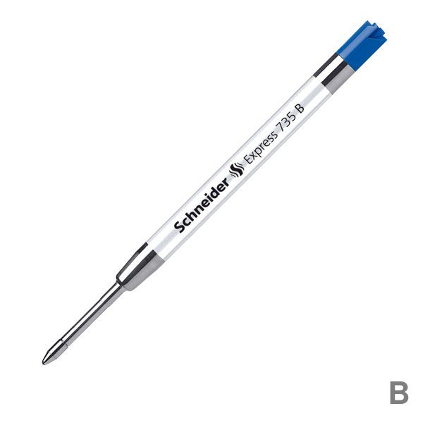 Großraummine aus Metall im ISO-Format G2. Schreibfarbe blau. Strichstärke B. Dokumentenecht nach ISO 12757-2. Die verschleißfeste Edelstahlspitze garantiert, dass der große Pastenvorrat vollständig und schmierfrei genutzt werden kann. Passend in alle Schneider-Kugelschreiber mit Plug+Play-System und viele andere Fabrikate. Premium-Qualität für ca. 10.000 Meter saubere Schrift.