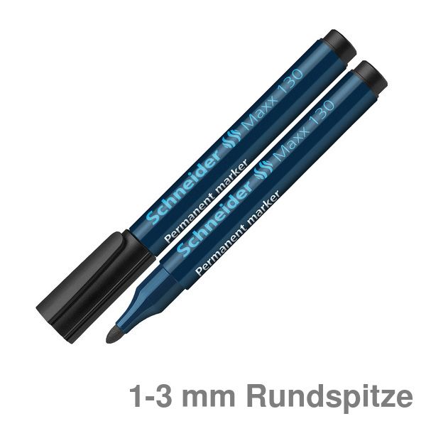 Permanentmarker mit Rundspitze, Strichstärke 1 - 3 mm. Schreibfarbe schwarz. Zum Beschriften von Karton, Papier, Kunststoff, Glas, Metall, Holz und fast allen anderen Materialien. Die Markierung ist schnelltrocknend, wasserfest und gut lichtbeständig. Die Cap-Off-Tinte trocknet nicht ein, auch wenn der Marker 2-3 Tage offen bleibt. Sie ist geruchsarm und frei von Toluol und Xylol. Der Marker hat eine praktische Clipkappe und ist nachfüllbar mit der Refill station Maxx 640.