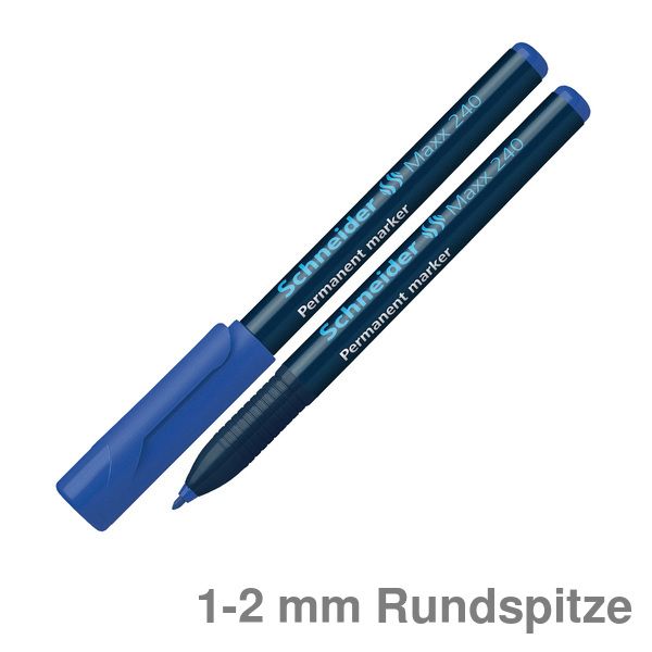 Permanentmarker mit Rundspitze, Strichstärke 1 - 2 mm. Schreibfarbe blau. Zum Beschriften von Karton, Papier, Kunststoff, Glas, Metall, Holz und fast allen anderen Materialien. Die Markierung ist schnelltrocknend, wasserfest und gut lichtbeständig. Die Cap-Off-Tinte trocknet nicht ein, auch wenn der Marker 2-3 Tage offen bleibt. Sie ist geruchsarm und frei von Toluol und Xylol. Schlankes Taschenmodell mit praktischer Clipkappe.
