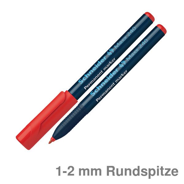 Permanentmarker mit Rundspitze, Strichstärke 1 - 2 mm. Schreibfarbe rot. Zum Beschriften von Karton, Papier, Kunststoff, Glas, Metall, Holz und fast allen anderen Materialien. Die Markierung ist schnelltrocknend, wasserfest und gut lichtbeständig. Die Cap-Off-Tinte trocknet nicht ein, auch wenn der Marker 2-3 Tage offen bleibt. Sie ist geruchsarm und frei von Toluol und Xylol. Schlankes Taschenmodell mit praktischer Clipkappe.
