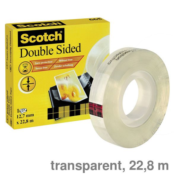 Doppelseitiges Klebeband 665. Werkstoff: Zellulose. Beidseitig klebend. Reißfest. Alterungsbeständig. Klebstoff schlägt nicht durch. Bandgröße (L x B): 22,8 m x 12,7 mm.