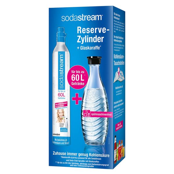 Nie mehr ohne sprudelnde Getränke! Mit einem zweiten CO2-Zylinder hast du stets CO2 für bis zu 60 L sprudelnde Getränke zu Hause. Zum Einschrauben. 1 l Glasflasche. Verwendung für Produkt: SODASTREAM Wassersprudler Crystal 2.0, Easy One Touch, Easy. Achtung. Gefahrenhinweise: Enthält unter Druck stehendes Gas; kann bei Erwärmung explodieren. Im Zylinderventil befindet sich eine Berstscheibe, durch die der Inhalt des Zylinders sicher abgelassen wird, bevor der Testdruck erreicht wird, damit der Zylinder geschützt wird.. Sicherheitshinweise: An einem gut belüfteten Ort aufbewahren..
