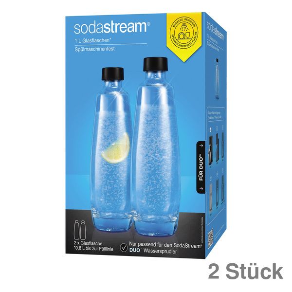 Unsere neue Glasflasche punktet nicht nur mit mehr Volumen sondern auch mit einem zeitlosen, eleganten Design. Bitte beachten: diese Glasflasche ist nur kompatibel mit DUO. Verwendung für Produkt: SODASTREAM Wassersprudler DUO Titan 1016812491. 1 l, Fülllinie 0,84 l. spülmaschinengeeignet. Material: Glas.