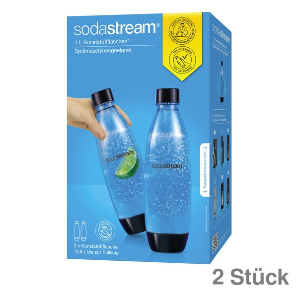 Diese Kunststoffflasche passt perfekt zu dem neuen DUO Wassersprudler und ist eine gute Ergänzung für die Nutzung in der Freizeit, beim Sport, in der Schule oder einfach für unterwegs. Die Flasche mit schwarzem Deckel und schwarzer Bodenabdeckung ist im Duopack erhältlich und sorgt für eine gute Vorratshaltung. Verwendung für Produkt: SODASTREAM Wassersprudler DUO Titan Starterset 1016812491. 1 l, Fülllinie 0,84 l. spülmaschinengeeignet. Material: Kunststoff.