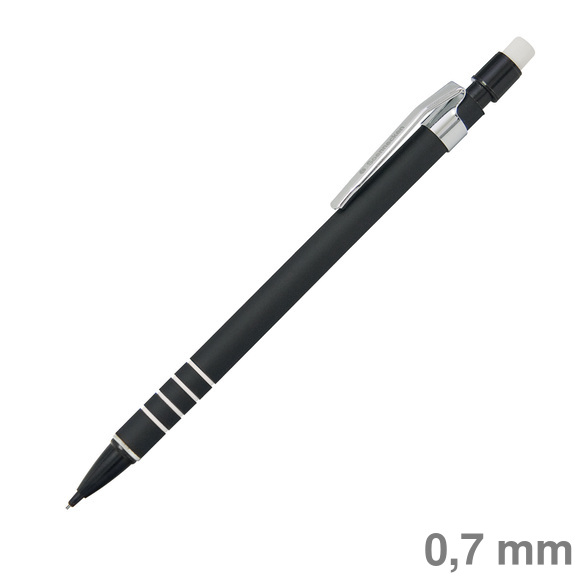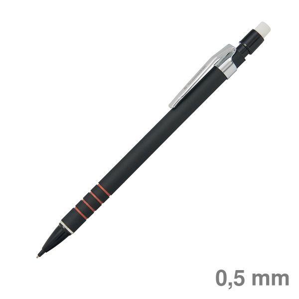 Druckbleistift 0,5mm HB schwarz/rot Druckmechanik, Kunststoffschaft, mit Radierer und mit Metallclip.