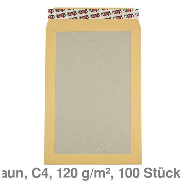 Papprückwandtaschen DIN C4. Maße: 229 x 324 mm. braun