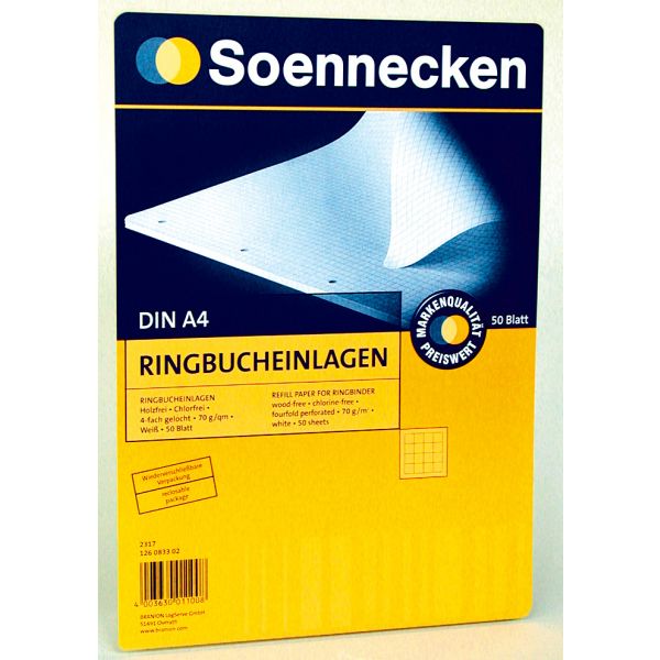 Soennecken Ringbucheinlage DIN A4 kariert 70g/m² 4fach Lochung weiß 50 Bl./Pack.