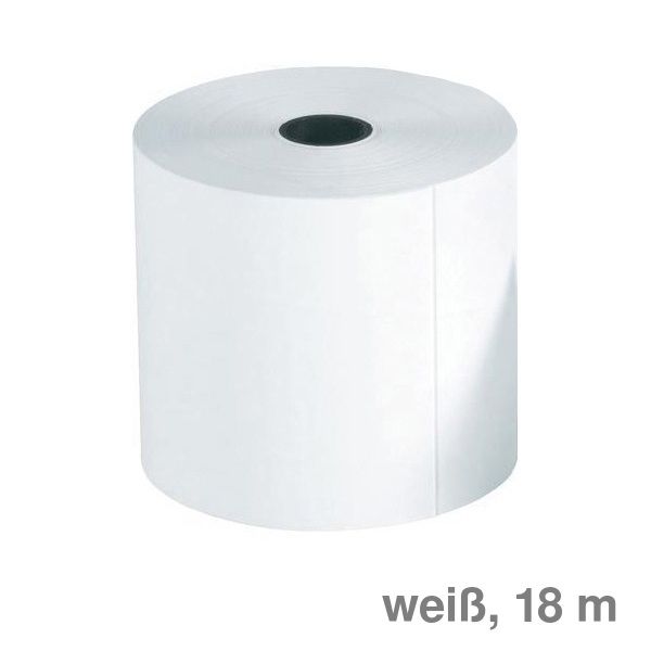 Soennecken Thermokassenrolle 57 mm x 18 m (B x L). Verwendung für Produkt: Registrierkassen, EC-Cash. Maße: 57 mm x 18 m (B x L), Durchmesser: 39 mm, Durchmesser des Kerns: 12 mm, Grammatur: 55 g/m², Ausführung des Papiertyps: holzfrei, Farbe: weiß, Text des Aufdruckes (hinten): Ermächtigung zum SEPA-Lastschrifteinzug. Inhalt: 5 Rl./Pack.