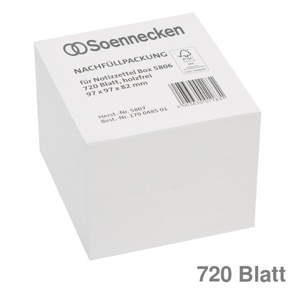 Soennecken Zettelbox-Nachfüllpackung weiß 97 x 97 mm 720Bl.