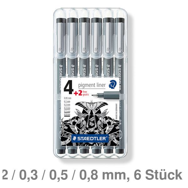 Staedtler Fineliner "Pigment Liner" schwarz 0,05 / 0,1 / 0,2 / 0,3 / 0,5 / 0,8 mm 6St.