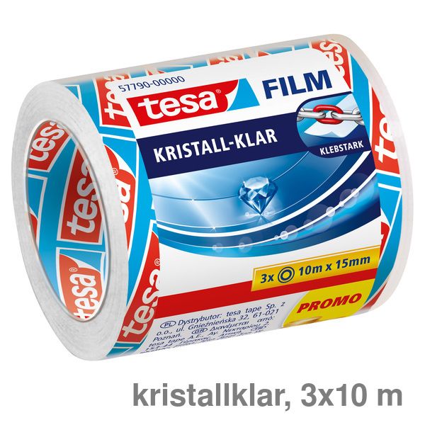 Klebefilm tesafilm® kristall-klar 3 St.. Werkstoff: PP. Unsichtbar. Schattenfrei kopierbar. Lichtpausfähig. Reißfest. Alterungsbeständig. Höchste Transparenz, nahezu unsichtbar. Bandgröße (L x B): 10 m x 15 mm.
