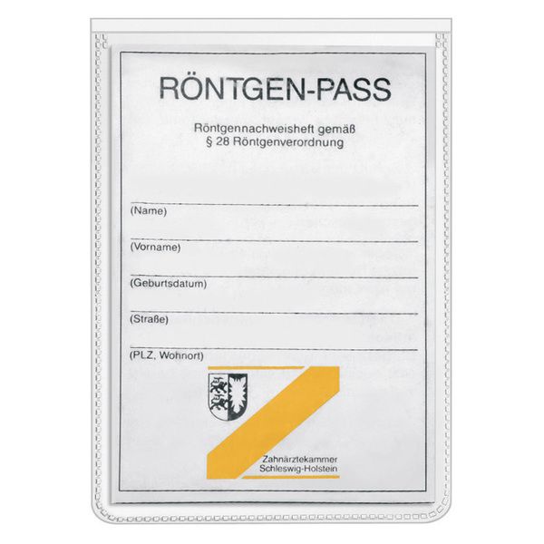 Ausweishülle, Kartentasche, Sammelhülle. Werkstoff: PP. Ausführung der Oberflächen-Beschaffenheit: seidenmatt. Ausführung: dokumentenecht. Farbe: glasklar. Schutz- und Ausweishülle, 170 my, Oberfolie verkürzt, dadurch leichteres Einstecken, mit Einreißschutz. Produktverwendung: passend für Führerschein (rosa), Röntgenpass, Blutspenderausweis, Bonusheft. Anordnung der Lage der Öffnungsseite: oben offen. Größe Innenteil (B x H): 80 x 108 mm.