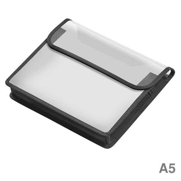 Heftbox VELOBAG®. Werkstoff: PP. Querformat, mit Klettverschluss und Innentasche, mit Schlaufen für Trageriemen, max. Füllhöhe 30 mm. Verwendung für Papiergrößen: A5. Farbe/Motiv: transparent.