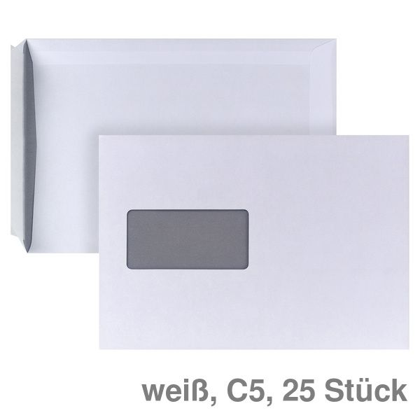 Versandtasche C5, mit Fenster, haftklebend weiß 90 g/m² 25St.