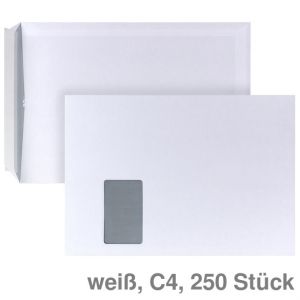 Versandtaschen DIN C5, mit Fenster, weiß. Maße 162 x 229 mm. selbstklebend