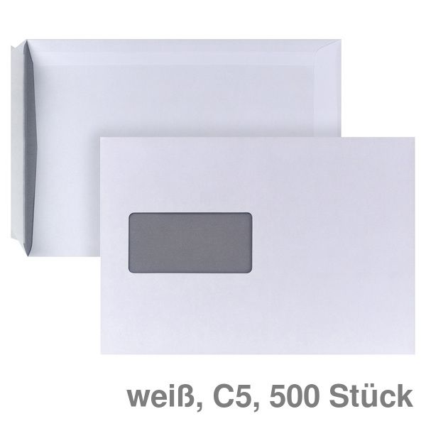 Versandtasche C5, mit Fenster haftklebend weiß 90 g/m² 500St.