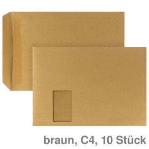 Versandtasche C5, mit Fenster, selbstklebend braun 90g/m² 10St.