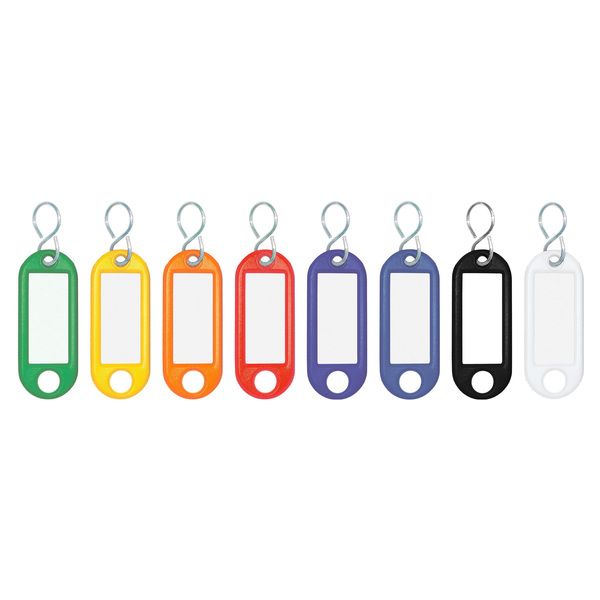 Schlüsselanhänger S-Haken, farbig sortiert. Großpackung aus Kunststoff, mit weißem, beschriftbarem, auswechselbarem Etikett. Maße: (B)52 x (T)21 x (H)3 mm, sortiert in den Farben rot, orange, gelb, grün, violett, schwarz, weiß, blau