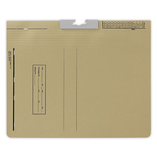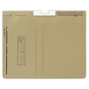 KST-T-Gleit-Hefter aus umweltschonendem Recyclingkarton 250 g/qm, mit Organisationsdruck und DF-Stanzung, Farbe: natron, mit Behördenheftung