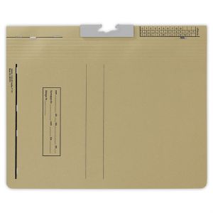 T-Gleit-Hefter mit Kunststoffbeschlag. Recyclingkarton, 320 g/qm. Behördenheftung, Metallmechanik, DF-Stanzung, Lagerdruck, Farbe: chamois
